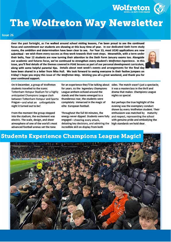 We are proud to celebrate the successes of our students in school and want them to feel pride in their stories being told. We are also keen to share and celebrate their successes beyond school. If you have good news story you would like us to know about, please send this to goodnews@wolfreton.co.uk.
